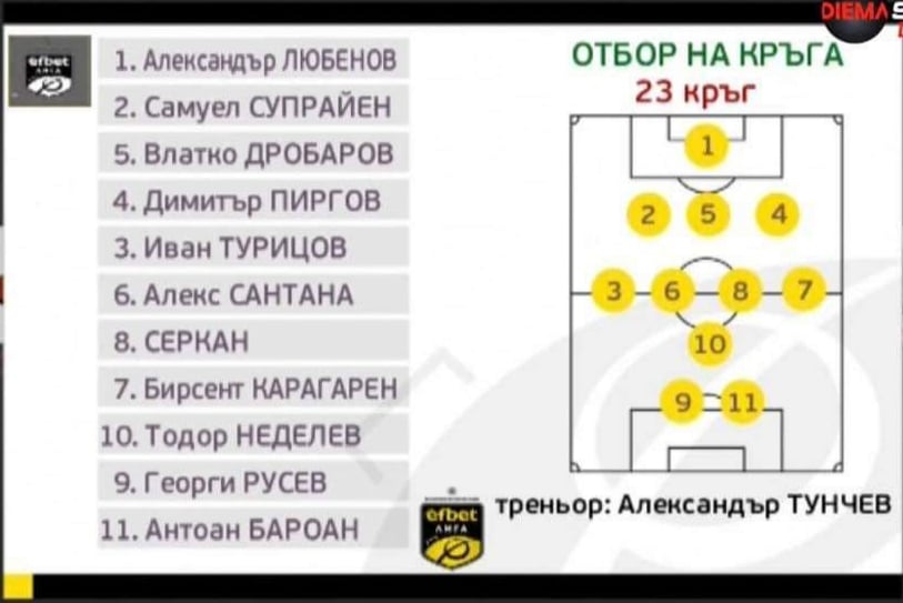 Македонскиот интернационалец Влатко Дробаров е во тимот на 23. коло во бугарската Прва лига. Дефанзивецот беше еден од најзаслужните што Черно Море ја совлада Арда со 2:0 со што ја забележа 10-тата победа во најсилната бугарска лига.
