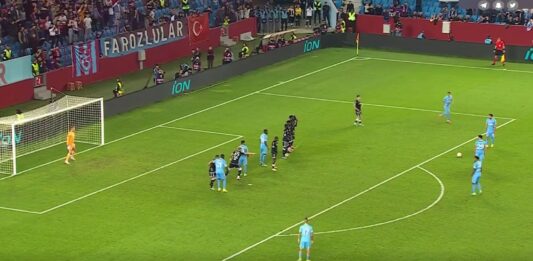 Трабзон игра против Монако во Лигата на Европа и води со 4:0, а стрелец на еден од головите беше македонскиот репрезентативец Енис Барди. Тој реализира за 3:0 и тоа од слободен удар. Успеа да ги измами противничките дефанзивци во живиот ѕид со тоа што ги натера да скокнат, а тој шутираше под нив. Топката заврши … Continue reading Фантастичен гол на Барди против Монако (видео)