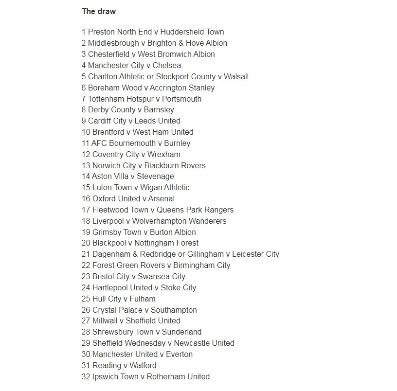 Денеска на „Енфилд“ беше извршена ждрепката за третото коло од ФА Купот, првото во кое се вклучени премиерлигашките тимови. Во оваа рунда ќе имаме неколку двојки кои привлекуваат внимание.
