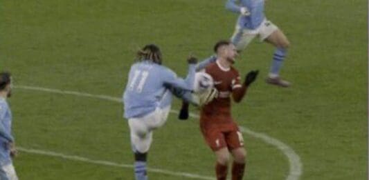 Во 99 минута од двобојот меѓу Ливерпул и Манчестер Сити од 28 коло на Премиер лигата се случи спорна ситуација. Алексис Мекалистер и Жереми Доку влегоа во борба за топка, а Белгиецот прво ја допре топката и потоа со ногата опасно го удри фудбалерот на Ливерпул во градите. Ситуацијата беше разгледана со ВАР, а судиите … Continue reading Имаше ли пенал во 99. минута на големото англиско дерби? (видео)