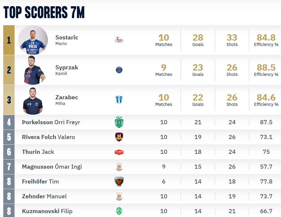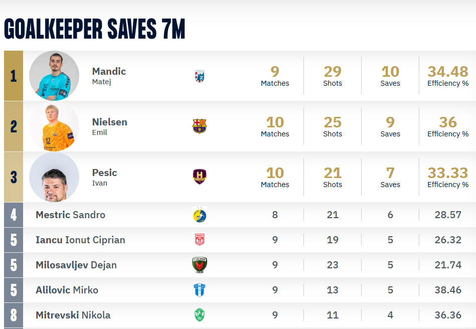 Кузмановски се најде во Топ 10 листата на најдобри изведувачки на удари од седум метри, постигна 14 гола од 21 обид или во проценти 66%.
