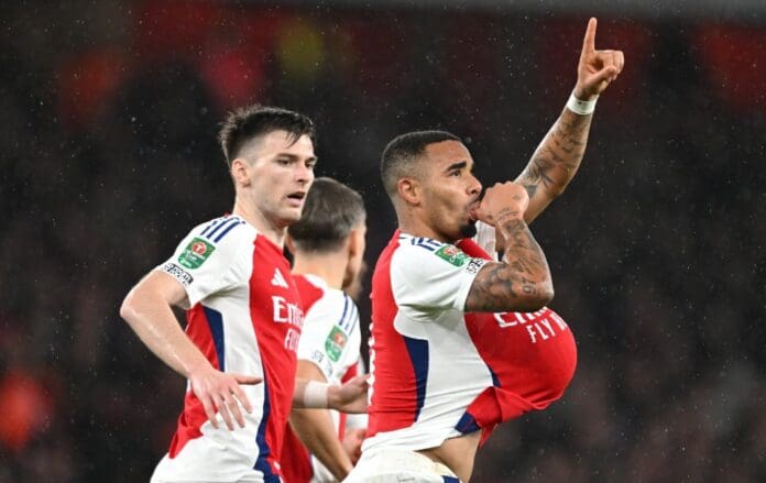 Фудбалерите на Арсенал се првите полуфиналисти во Карабао купот на Англија, откако со пресврт го победија Кристал Палас со 3:2. Микел Артета излезе со комбиниран тим, но кога виде дека гостите поведоа, ги внесе во игра капитенот Мартин Одегард, Салиба и Букаи Сака и успеа да направи пресврт за победа.