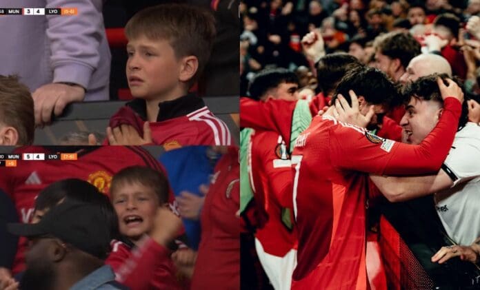 Овој млад навивач на Манчестер Ј. кој го ловеа камерите на „Олд Трафорд“ во последните 15 минути од дополнителните минути за игра и неговата страст за фудбалот најдобро го опушуваат она што се случуваше вчера на „Театарот на соништата“.