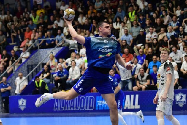Екипата на Алкалоид по првата полуфинална пресметка против Рунар во рамките на ЕХФ Европскиот Куп има предност од 42-37. Единствениот македонски претставник на европска сцена успеа да го издржи скандинавскиот ритам и да одигра уште еден добар меч во ова натпреварување. Момците на Лазаров добро се справија и со играта „седум на шест“ на противникот во вториот дел.