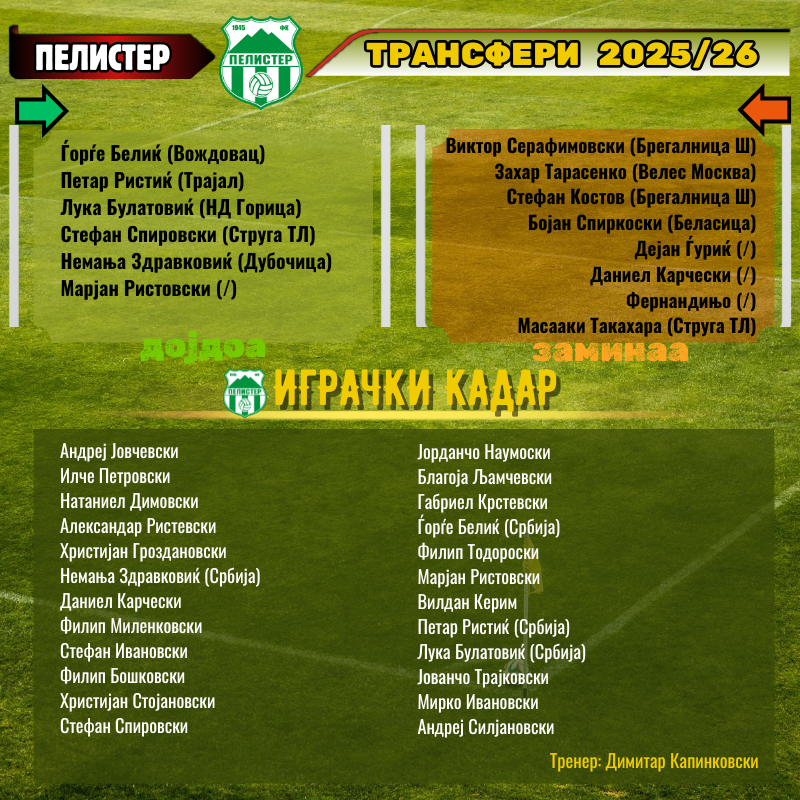 Нема дилеми дека овие имиња гарантираат или ветуваат добар Пелистер во новата сезона. Се разбира предводени од стратегот Димитар Капинковски.