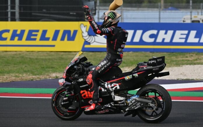 Марко Безеки триумфираше во спринтот за Големата награда на Сан Марино, благодарение на падот на Марк Маркез во шестиот круг. Возачот на Априлија донесе голема радост кај италијанската публика победувајќи на крајот на интересната спринт трка на која Алекс Маркез го освои второто место, додека како трет финишираше Фабио Ди Џанантонио.