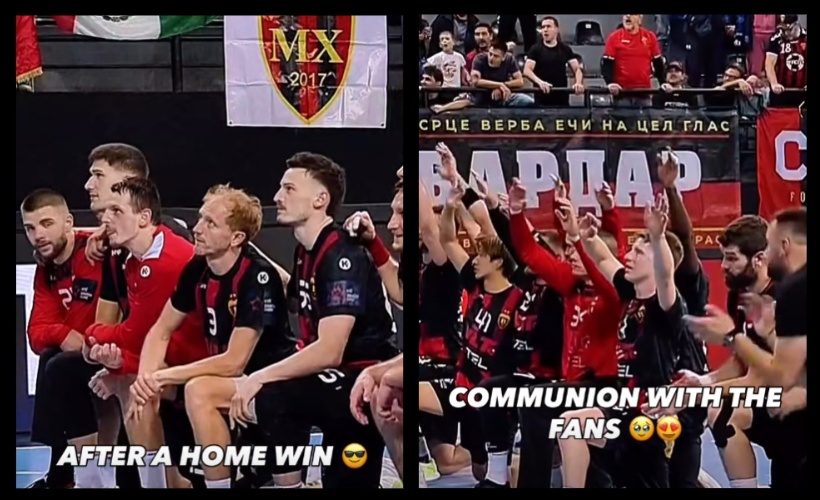 Начинот на кој ракометарите на Вардар комуницираат со своите најверни навивачи по секој одигран натпревар во бастионот „Јане Сандански“, не остана незабележен и по првиот годинешен европски дуел во ЕХФ Европската лига.