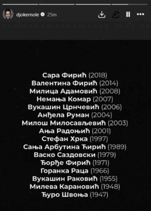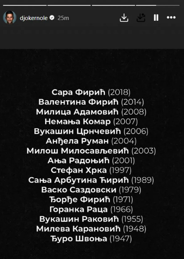 Ѓоковиќ прво објави сторија поврзана со годишнината од трагедијата во Нови Сад, а потоа и имињата на луѓето кои ги загубија животите на 1 ноември 2024 година.