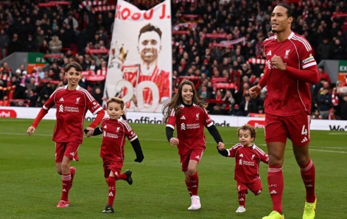 Две од децата на трагично загинатиот фудбалер на Ливерпул, Диого Жота – Динис и Дуарте – како и членови на семејството, денеска се појавија на „Енфилд“ заедно со останатите деца пред почетокот на натпреварот од Премиерлигата меѓу Ливерпул и Вулверхемптон.