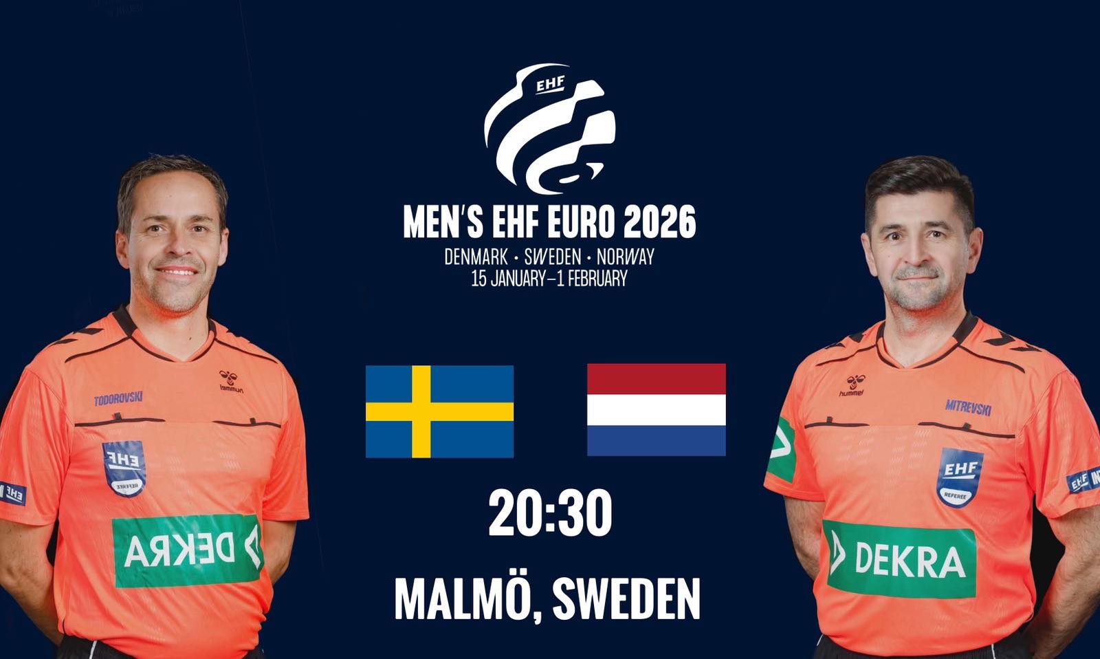 Двајцата добија номинација на континенталното натпреварување, тие ќе ја делат правдата на дуелот меѓу Шведска и Холандија, кој се игра во Осло. Дуелот се игра со почеток во 20:30 часот, во рамките на групата Е.