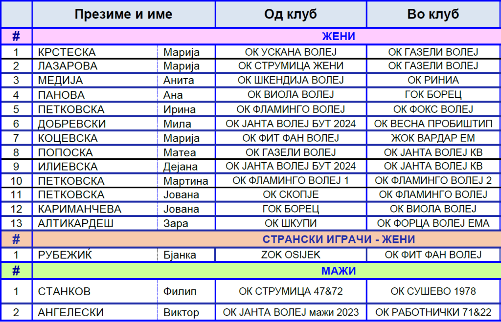 Заврши мини-преодниот рок во одбојкарските првенства, дамите поактивни на „пазарот“