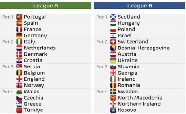 Петтата сезона од Лигата на нации ќе започне кон крајот на септември оваа година, а сите учесници уште денеска ќе ги дознаат имињата на своите противници. Традиционално, вкупно 54 членки на УЕФА (без суспендираната Русија) се поделени во четири дивизии (лиги) врз основа на резултатите во претходното издание на престижното натпреварување. За првпат во нашата историја прогресиравме во Лига Б делот, што е втор по ранг во рамките на УЕФА натпреварувањето. Во трите најквалитетни дивизии (А, Б и Ц), 16 национални тимови се поделени во четири шешири, врз основа на конечниот пласман во претходното издание на Лигата на нации. Националните тимови ќе бидат случајно извлечени во четири групи од по четири селекции, така што секоја група ќе содржи по еден тим од секој од четирите шешири.