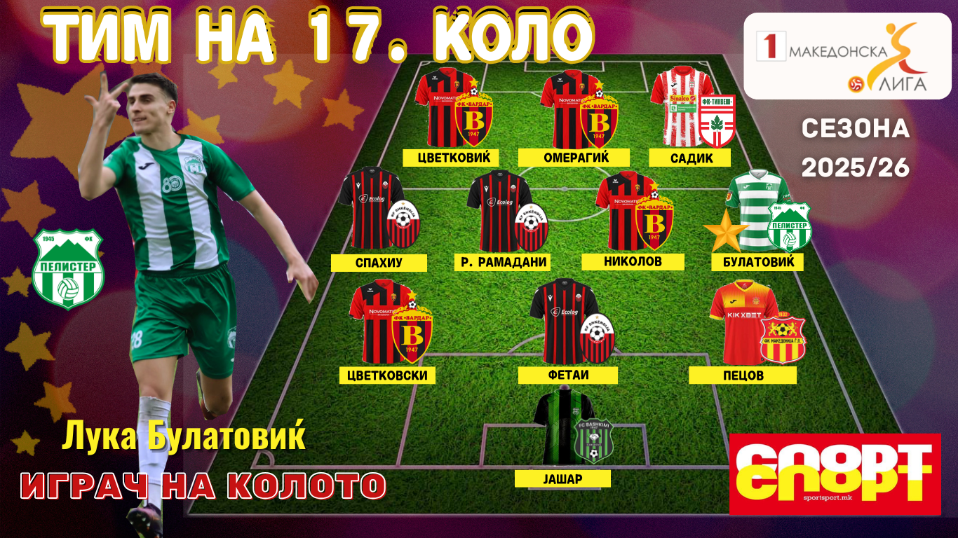 И дефинитовно Лука Булатовиќ, офанзивецот на Пелистер е централна фигура во ова 17.коло или прво пролетно од тековната сезона 2025/26. Србинот не само што му даде три гола на Работнички, туку и одигра маестрален меч, кој беше екстра значаен за неговиот тим. Лука едноставно блескаше и затоа според „СпортСпорт“ е играч на колото.