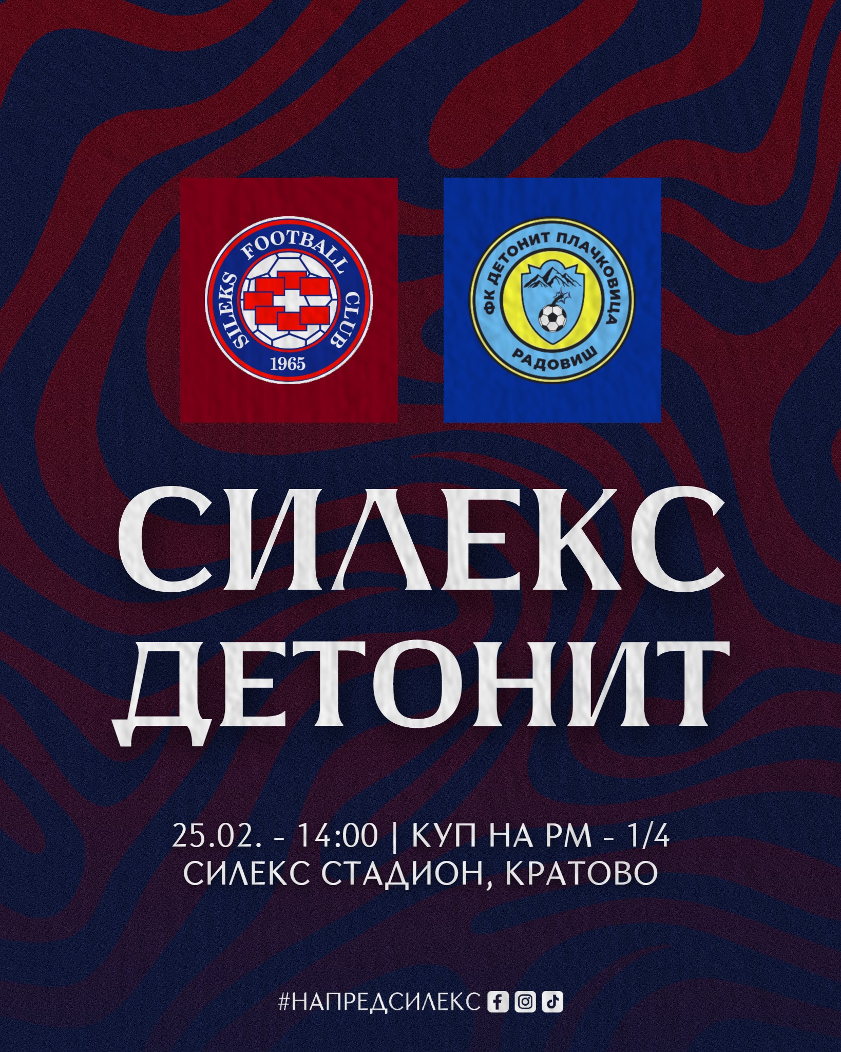 Иако првично дуелот од чевртфиналето на Купот на Македонија помеѓу Силекс и Детонит Плачковица, кој е закажан да се игра за среда (25 февруари) со почеток во 14:00 часот, требаше да се одигра во Радовиш, сепак, планот се смени.