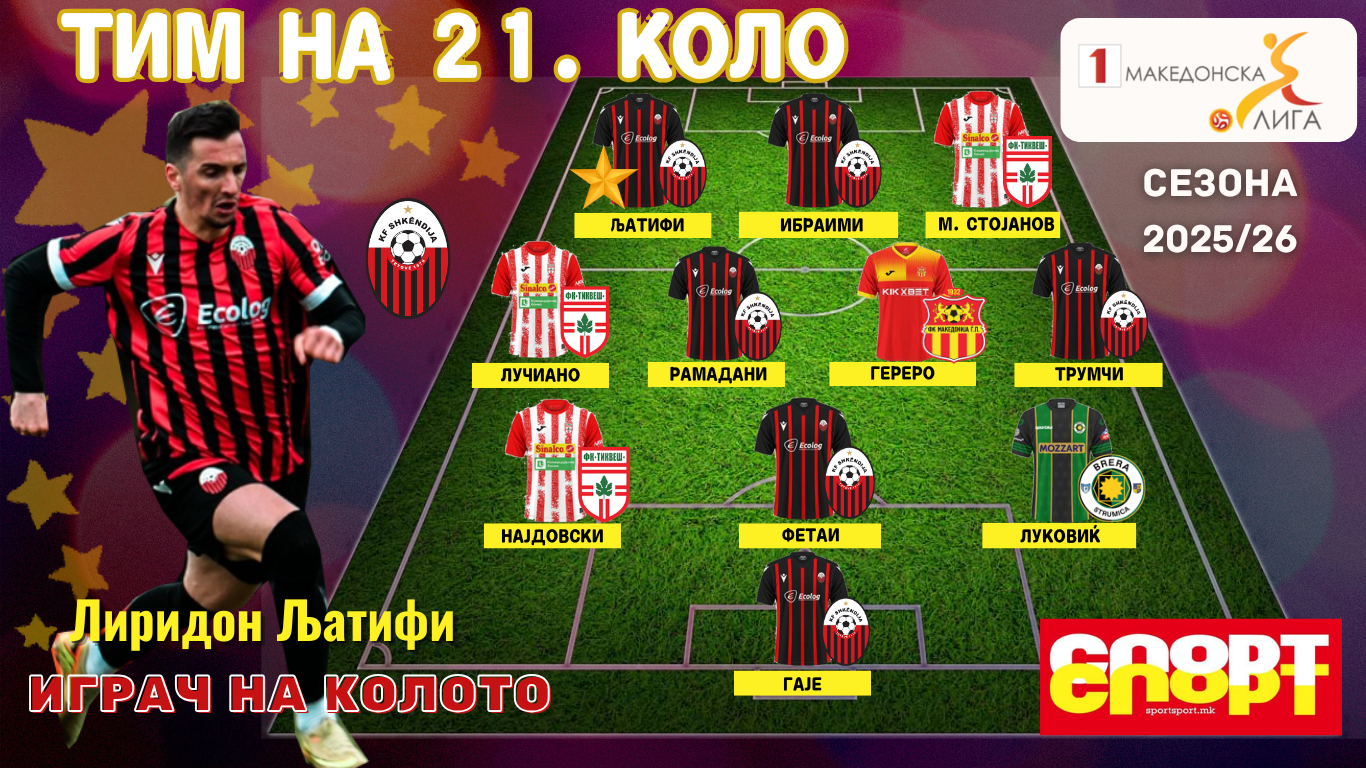 Нема дилеми дека кога ќе постигнеш победнички гол во едно мега – дерби, а притоа ќе одиграш навистина добро, тогаш си и играч на колото. Па така според “СпортСпорт“, напаѓачот на Шкендија, Лиридон Љатифи е играч на ова 21.коло. По асистенцијата на Бесарт Ибраими, во таа 66.минута токму Љатифи стрелаше во мрежата на Вардар и на лидерот му го нанесе првиот пораз по 40 меча и прв пораз во тековниот шампионат.