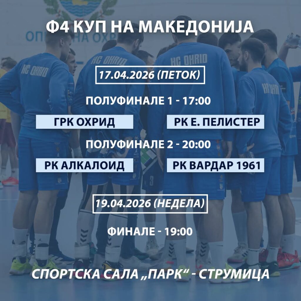Полуфиналните натпревари и финалето се играат во салата “Младост “ – Струмица, на 17 и 19 април