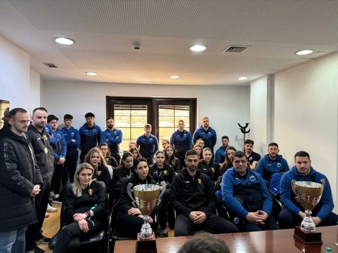 Претставници на двата клуба, како и потпретседателот и членот на ИО на ОФМ, Кирил Калеников, денеска беа на прием кај министерот за спорт Борко Ристовски, кој за освоените титули и промоција на спортот и спортските вредности им додели и парични награди од еден милион денари за Штип УГД, односно 500.000 денари за Вардар ЕМ.