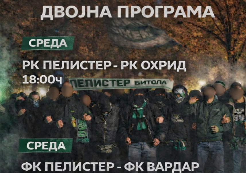 По завршување на ракометното дерби, фановите ќе се преселат на стадионот „Петар Милошевски“ каде се игра вечното фудбалско дерби помеѓу Пелистер и Вардар кое е закажано со почеток во 20 часот. Битолчани се во долниот дел од табелата и бодовите против лидерот ќе бидат и тоа како добредојдени. „Црвено-црните“ пак се лидери и имаат три бода предност пред Шкендија која прво ќе бара победа против Работнички, а потоа кикс на Вардар.