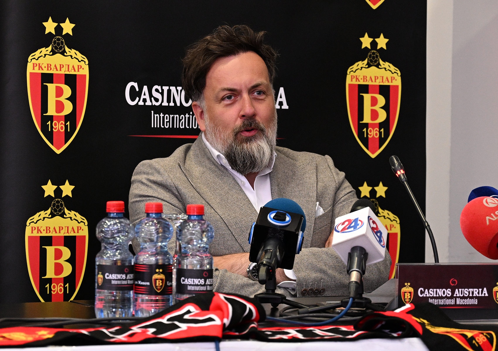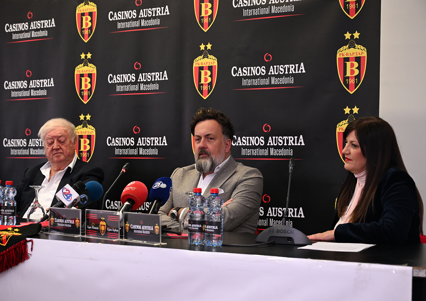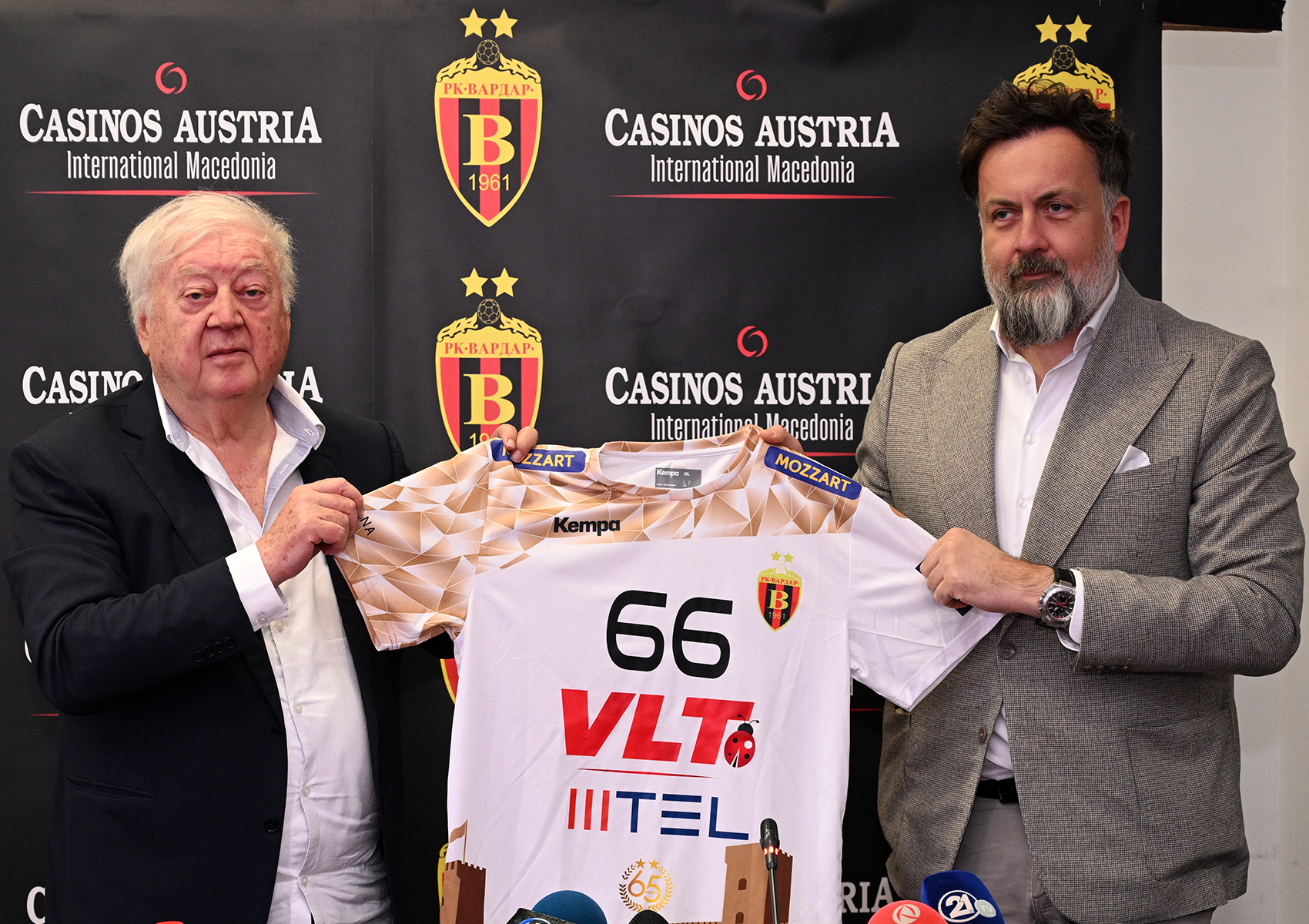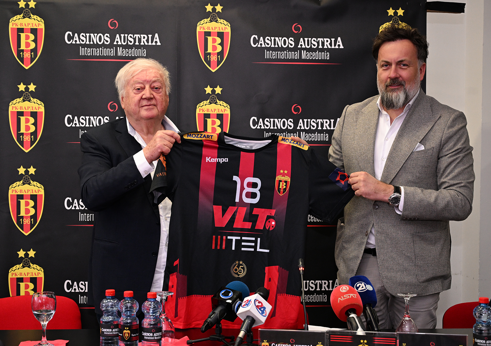 ракометот. Се надеваме дека ќе помогнеме, и тоа во континуитет, со години, и заедно со другите спонзори кои се вклучија, Вардар да се врати таму каде што припаѓа. Сакаме да ги полниме салите, да бидеме со Вардар и заедно да ги славиме успесите на клубот. Ги повикуваме и сите други кои се во можност да помогнат, да го направат тоа. Важно е да се биде дел од Вардар. На играчите останува да се борат и да прават резултати.“, изјави Аднан Шариќ, директор на Касино Аустрија Интернешанал Македонија.