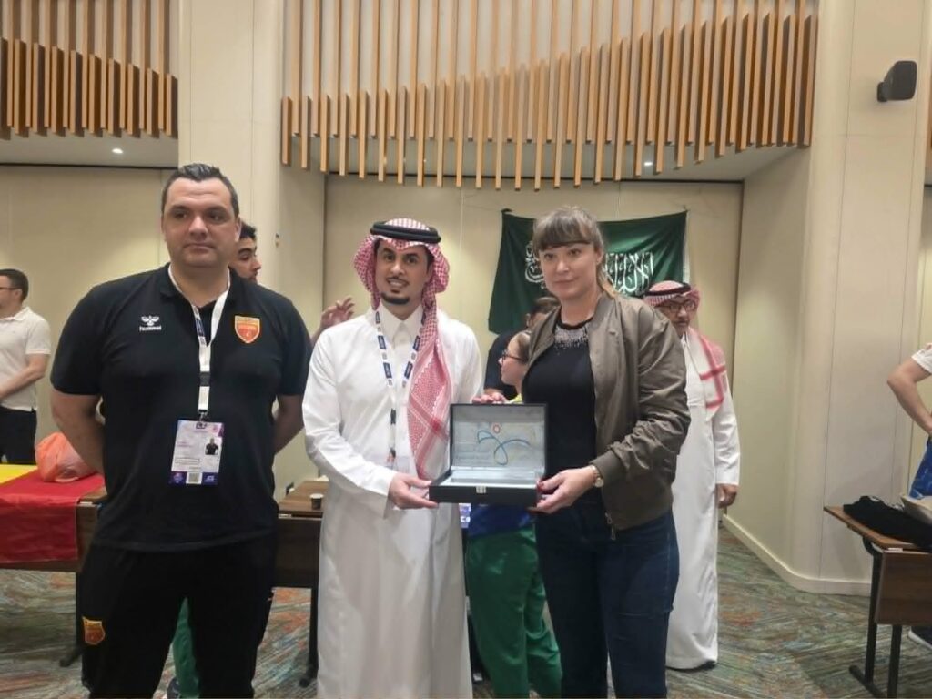 Претседателката на Федерацијата на училишен спорт на Македонија, Елена Мицковска доби благодарница од Саудиска Арабија за одличната организација.