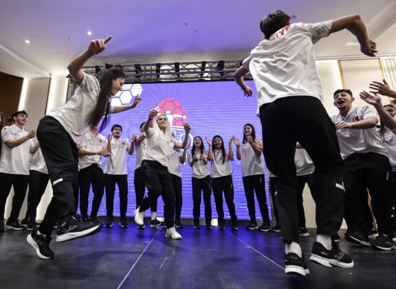 Пред утрешните важни натпревари од хотелот „Холидеј Ин“ заедно испратија во еден глас пееја: Македонија оле оле…најавувајќи колку се мотивирани, нивната желба е да ја направат горда нашата нација.