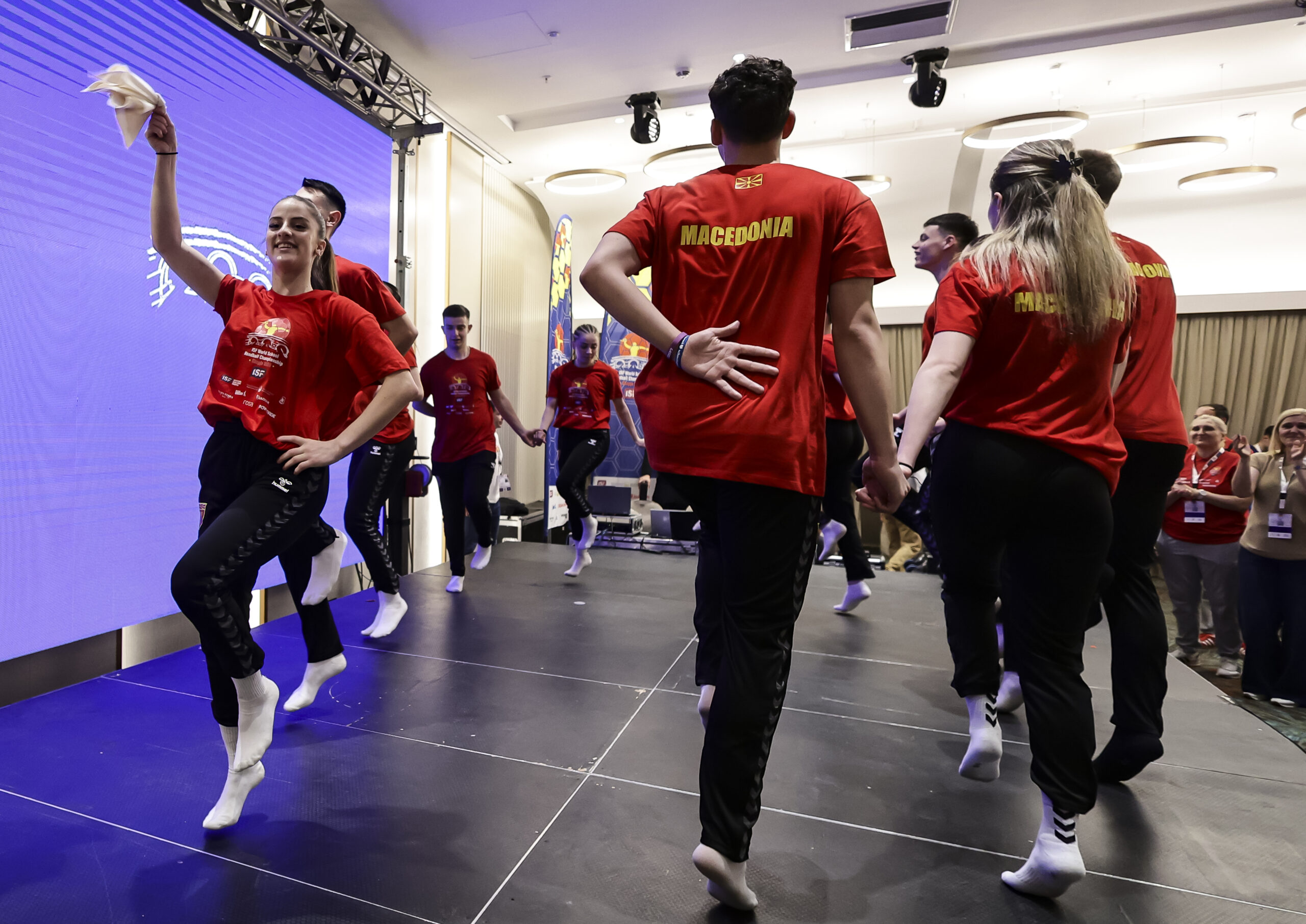 Македонската делегација се претстави со Пајдушко Оро. Нашите кадети блеснаа на сцената, беше вистинско уживање да се види нивниот перформанс.