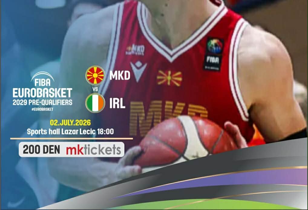 Кошаркарската федерација на Македонија денеска објави дека и официјално се пуштени во продажба билетите за претстојниот натпревар од претквалификациите за Евробаскетот во 2029 година, помеѓу Македонија и Ирска, кој што го играме на домашен терен.