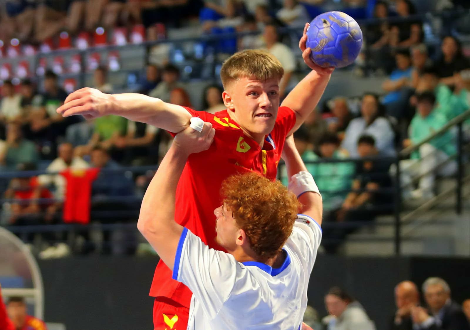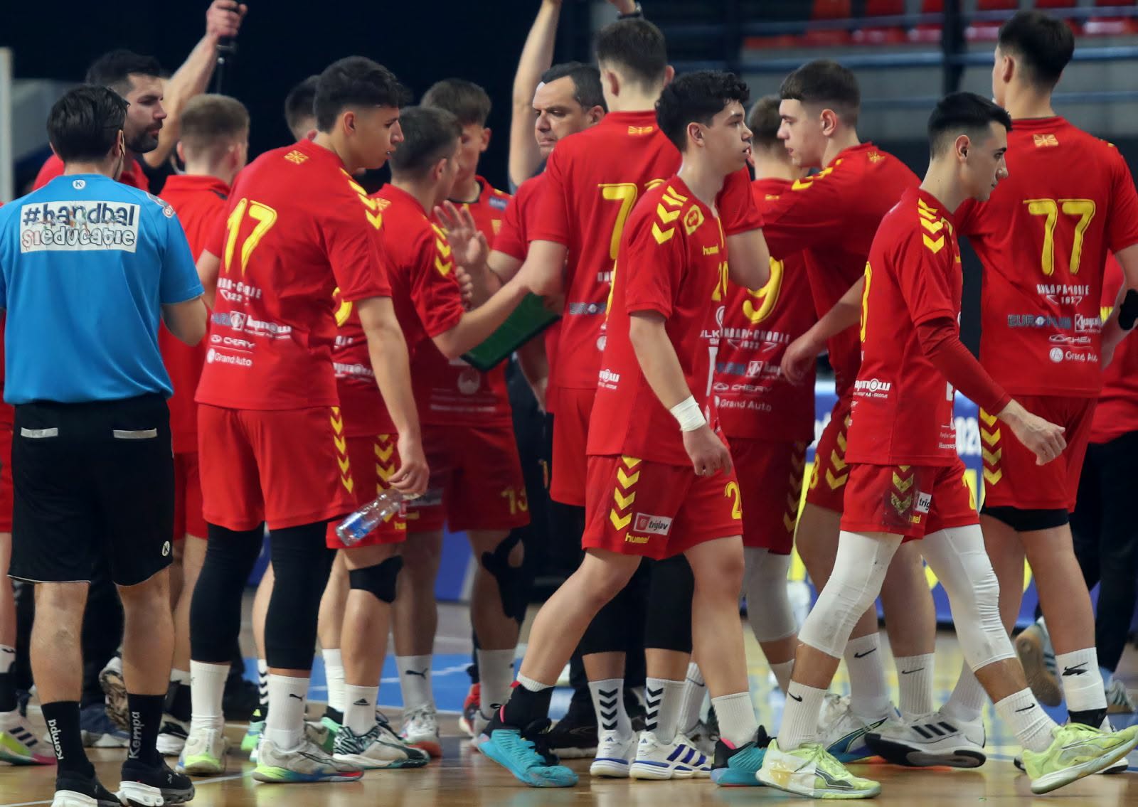 Кадетите не дозволија неизвесност. Нешто израмнета игра гледавме во воведните минути, противникот поведе со 1-2, но Македонија со три гола во низа врати за 4-2. Од овој момент момците на селекторот, Кузманоски полека, но сигурно го градеа победничкиот пат, на одморот резултатот беше 20-14.
