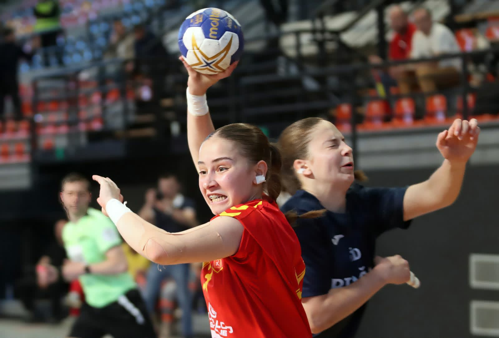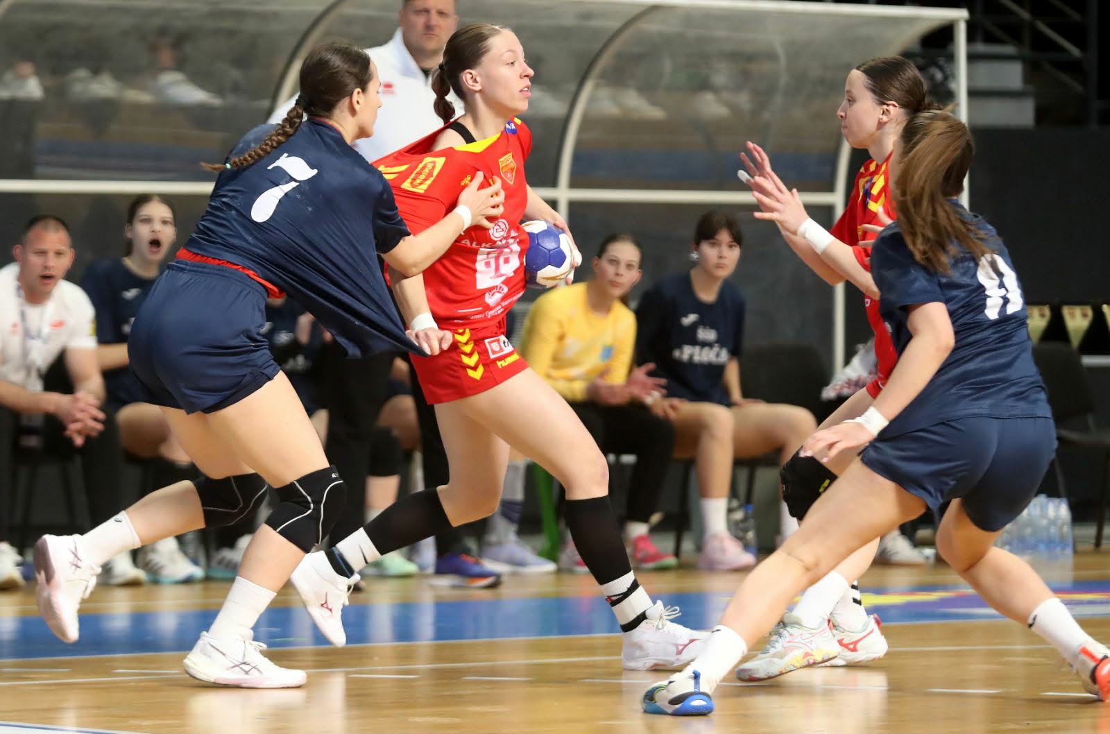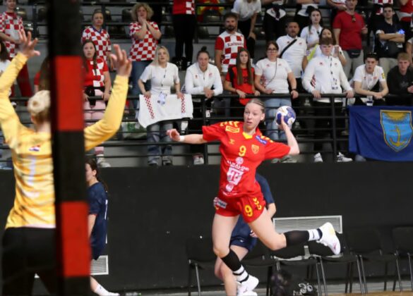 Нашите девојки после пет минути игра имаа предност од 5-1. Хрватските ракометарки вратија со 3-0 прво дојдоа на 5-4 во 10-та минута. Противникот после новите плус два за нас (6-4) поведе со 6-8 во 18-та минута. Македонија имаше чисти ситуации, но не успеваше да ги претвори во гол, во овој период дури и имаше нереализиран пенал. Кадетките израмнија на 11-11, но Хрватска повторно ги казни сите грешки на одморот заминаа со позитива од 12-15.