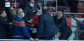 Десетминутна тепачка на тренер со навивачи на одбојкарски меч (видео)