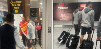 Фудбалерите стигнаа во Манчестер, ги пречекаа навивачи со македонски знамиња