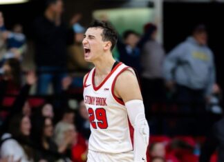 Македонскиот репрезентативец, Андреј Шошкиќ не само што продолжува со одличните игри во дресот на Стони Брук, туку се најде на чекор да влезе во друштво на легенди како Лери Бирд, Реџи Милер, Стеф Кари, Ајзеа Вилијамс...