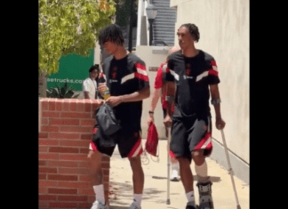 Дефанзивецот на Манчестер Јунајтед, Лени Јоро, кој беше потпишан на 18 јули за 52 милиони фунти, е повреден по дуелот со Арсенал во САД. По последниот тренинг на тимот во Калифорнија, се појави снимка на која 18-годишниот Французин носи...