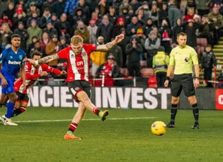 Фудбалерите на Шефилд Јунајтед во 103-тата минута израмнија и извадија реми против Вест Хем 2:2, во 21. коло од англиската Премиер лига. Натпреварот го одбележа целосно лудило во второто полувреме, каде беа покажани два црвени картони, а имаше и два...