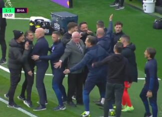 Хаос на мечот Тотенхем-Брајтон, тренерите ќе се испотепаа (видео)