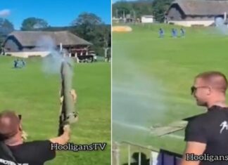 Нова доза на навивачкото лудило: На сред меч пукаше со золја кон играчите (видео)